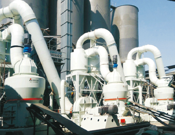 大塊物料經顎式破碎機破碎到所需粒度后,由提升機送至儲料斗,再由皮帶機將物料均勻定量連續地送入6臺MTW175歐版磨的主機磨室內進行研磨。粉磨后的物料被風機氣流送入選粉機進行分級,在選粉機葉輪的作用下,不符合細度要求的物料落入磨室內重新碾磨,合格的物料則經空氣斜槽進入旋風集粉器內,進行分離收集,經排料裝置排出即為成品粉體。