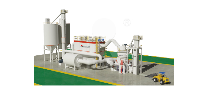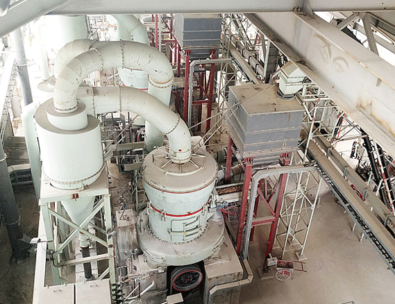 現場情況 大塊物料經顎式破碎機破碎到所需粒度后,由提升機送至儲料斗,再由皮帶機將物料均勻定量連續地送入2臺MTW175歐版磨的主機磨室內進行研磨。粉磨后的物料被風機氣流送入選粉機進行分級,在選粉機葉輪的作用下,不符合細度要求的物料落入磨室內重新碾磨,合格的物料則經空氣斜槽進入旋風集粉器內,進行分離收集,經排料裝置排出即為成品粉體。